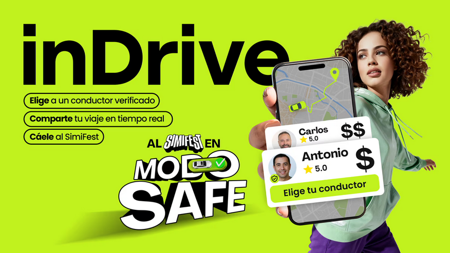 inDrive, la plataforma de movilidad y servicios urbanos pondrá en marcha su “Modo Seguro» en el SIMIFEST, donde los usuarios podrán pedir sus viajes y participar en diferentes dinámicas.