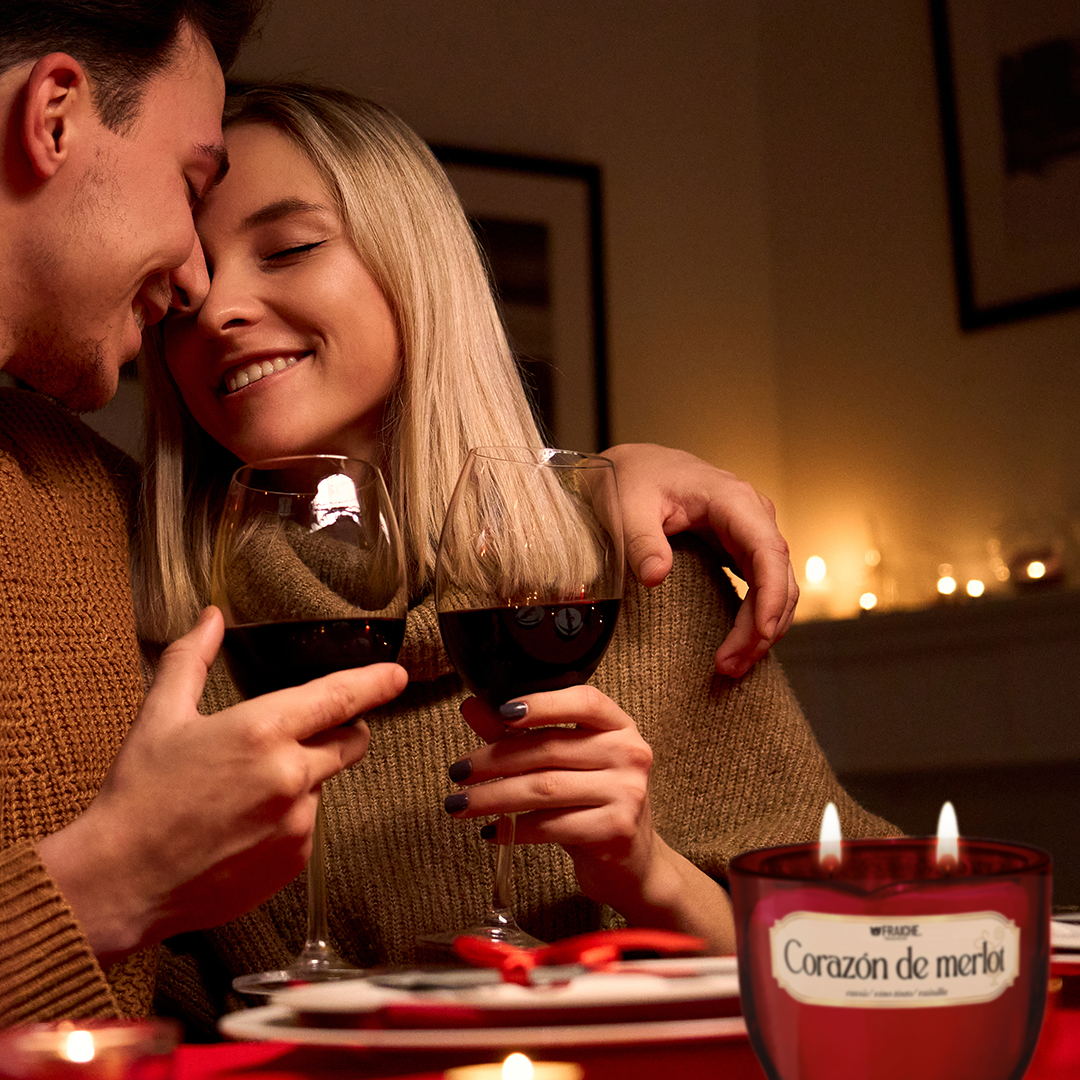 En esta temporada, Fraiche presenta “Corazón de Merlot”, una vela con notas que van desde vino tinto, fresas, una pizca de clavo y rosa damasco. Esta vela es la combinación perfecta de romance y sofisticación, y es el regalo ideal para cualquier pareja que quiera celebrar San Valentín de una manera especial.