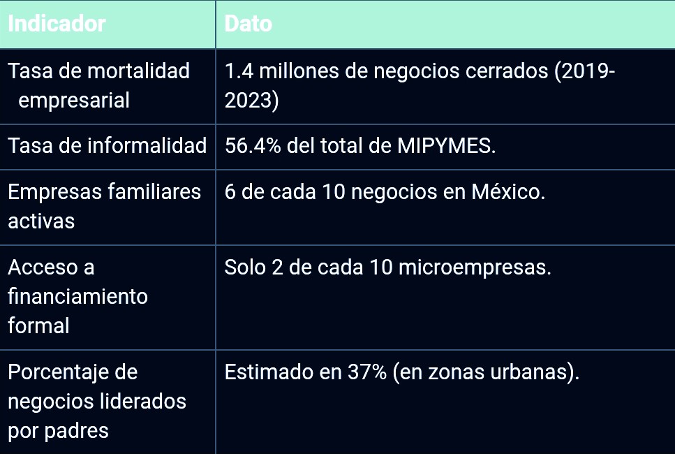 El 99.8% de los negocios en México son pequeñas y medianas empresas (PyMEs), que generan más del 70% de los empleos, según cifras recientes del INEGI (2024). Sin embargo, muchas de estas empresas, especialmente las familiares lideradas por padres emprendedores, enfrentan desafíos que ponen en riesgo su supervivencia.