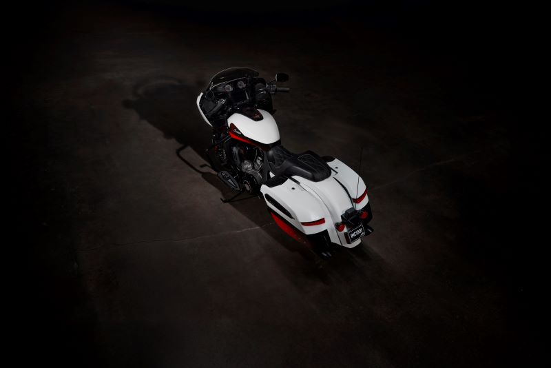 La Indian Challenger Elite inspira su diseño en el legado de Gene “Alabama Flash” Walker, que estableció un récord de velocidad en tierra en 1920 con su Indian PowerPlus y fue considerado el “hombre vivo más rápido”. La Indian Challenger Elite luce una pintura tricolor, con acabados premium Black Candy y Red Candy sobre pintura Crystal White Pearl Satin, y está realzada con partículas de cristal fragmentado en la pintura para añadir brillo y profundidad. El trabajo de pintura multicapa se completa con un patrón del logotipo de Indian Motorcycle Headdress sobre un difuminado pintado a mano. La llamativa pintura se complementa con acabados negros Dark Horse premium en toda la moto, dando a la bagger de edición limitada un estilo atrevido, inspirado en las carreras, que llama la atención.