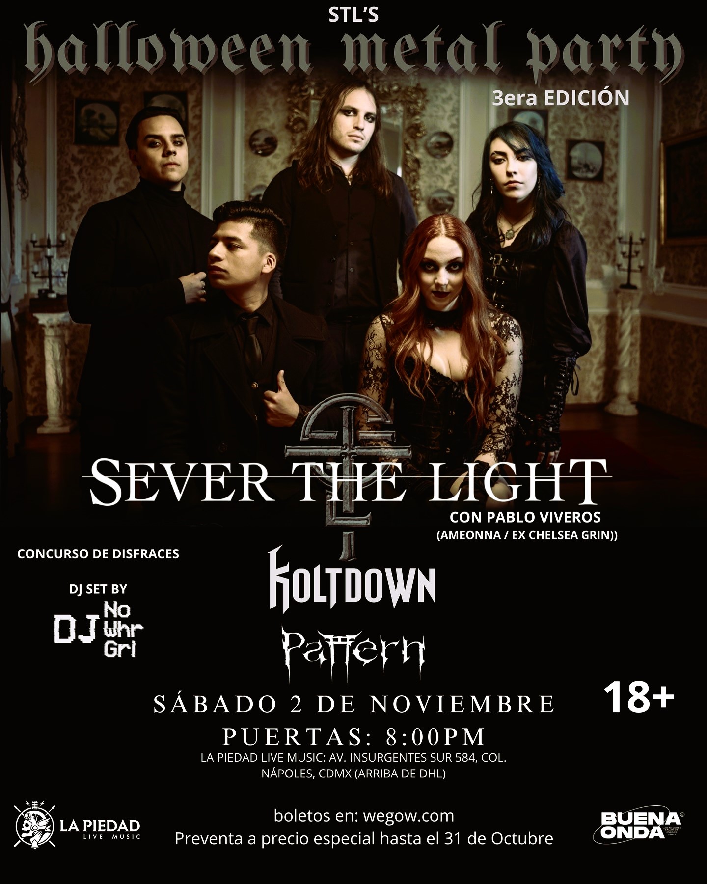 Con este espectáculo, Sever the Light reafirma su lugar como una de las bandas más importantes del gothcore en México. La Halloween Metal Party, ahora en su tercera edición, contará además con la participación de importantes actos locales como Koltdown y Pattern, dos bandas que también destacan en el panorama nacional por su potencia y autenticidad en el escenario. A ellos se sumará la DJ NoWhrGrl, quien estará a cargo de ambientar la noche con una selección de metal que hará vibrar a los asistentes hasta el amanecer.