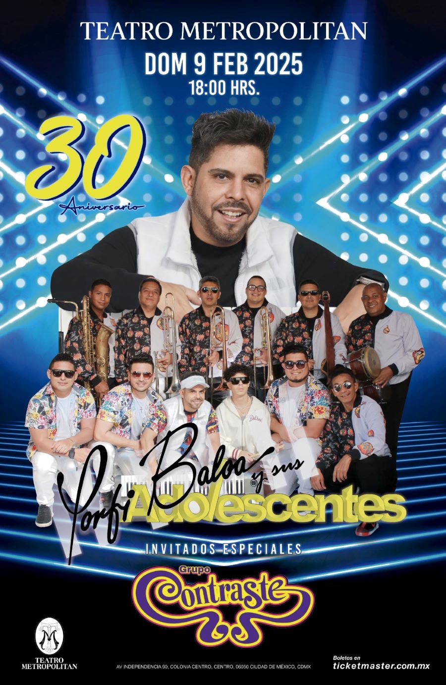 El concierto en el Teatro Metropólitan no solo celebrará los 30 años de carrera de Porfi Baloa y sus Adolescentes, sino que también ofrecerá al público mexicano la oportunidad de revivir en vivo los grandes éxitos que han marcado generaciones. Canciones emblemáticas como «Búscame», «Bésame», «Anhelo» y muchas más serán interpretadas con la energía y pasión que caracteriza a la orquesta.