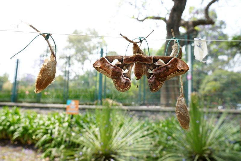 En el jardín del museo ya se han colocado más de mil capullos en un espacio acondicionado con hilos, que simulan las ramas donde estas mariposas suelen emerger. ‘Este proceso es sumamente delicado; la mariposa necesita condiciones adecuadas de humedad y temperatura para desplegar sus alas y permitir que la hemolinfa circule por sus venas, dándoles firmeza’, indicó la especialista.»