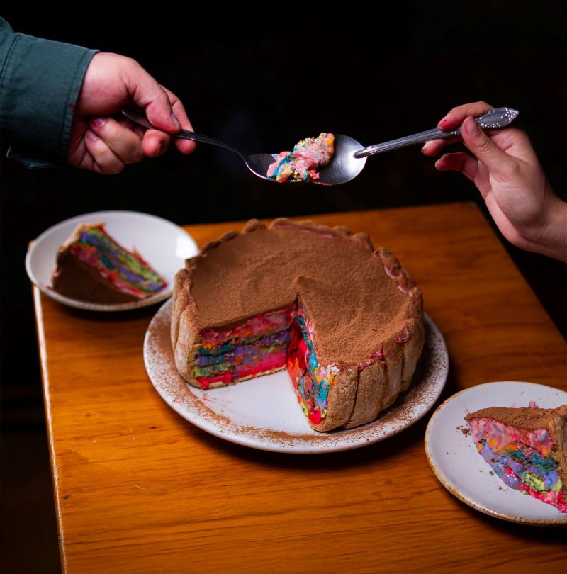 El tiramisú del Pride es una reinterpretación técnica, estética y emotiva del clásico italiano. El postre conserva su elegancia original con una base de queso mascarpone, azúcar, un toque de vainilla, soletas y espresso de café; pero en su interior, capa por capa, florecen los colores del arcoíris, como un manifiesto visual de inclusión, amor y belleza.Cada cucharada es un guiño a la diversidad que existe en lo que somos, lo que sentimos y lo que soñamos.