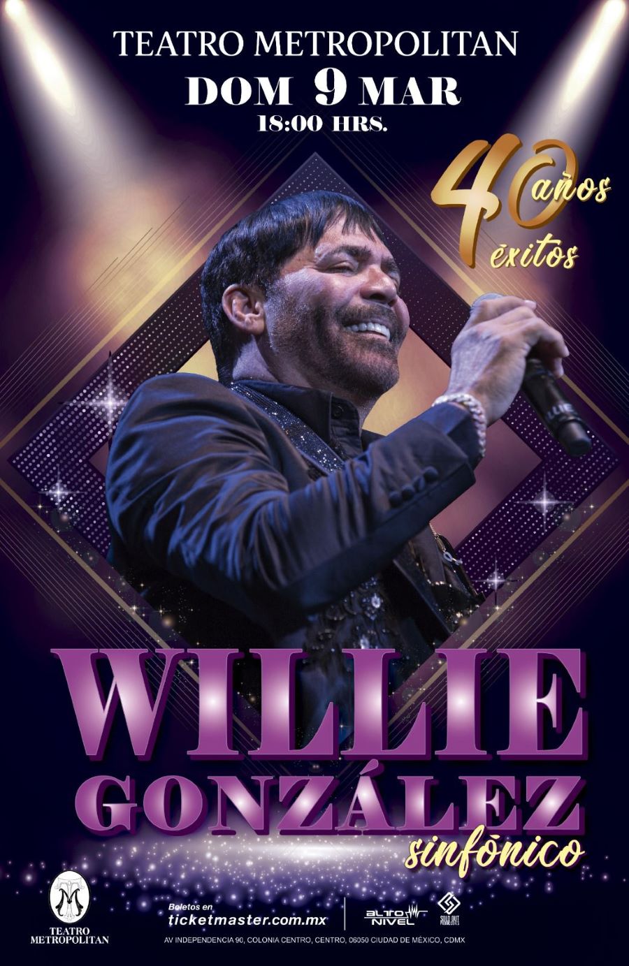 Willie González festeja 40 años de éxitos con un Concierto Sinfónico en el Teatro Metropólitan el próximo domingo 9 de marzo de 2025 a las 6pm en el Teatro Metropólitan de la Ciudad de México, que será el escenario de una celebración sin precedentes, pues el maestro salsero Willie González conmemorará cuatro décadas de trayectoria musical con un concierto sinfónico que promete ser inolvidable. Los boletos para este magno evento están disponibles a través del sistema Ticketmaster y en las taquillas del Teatro Metropólitan.